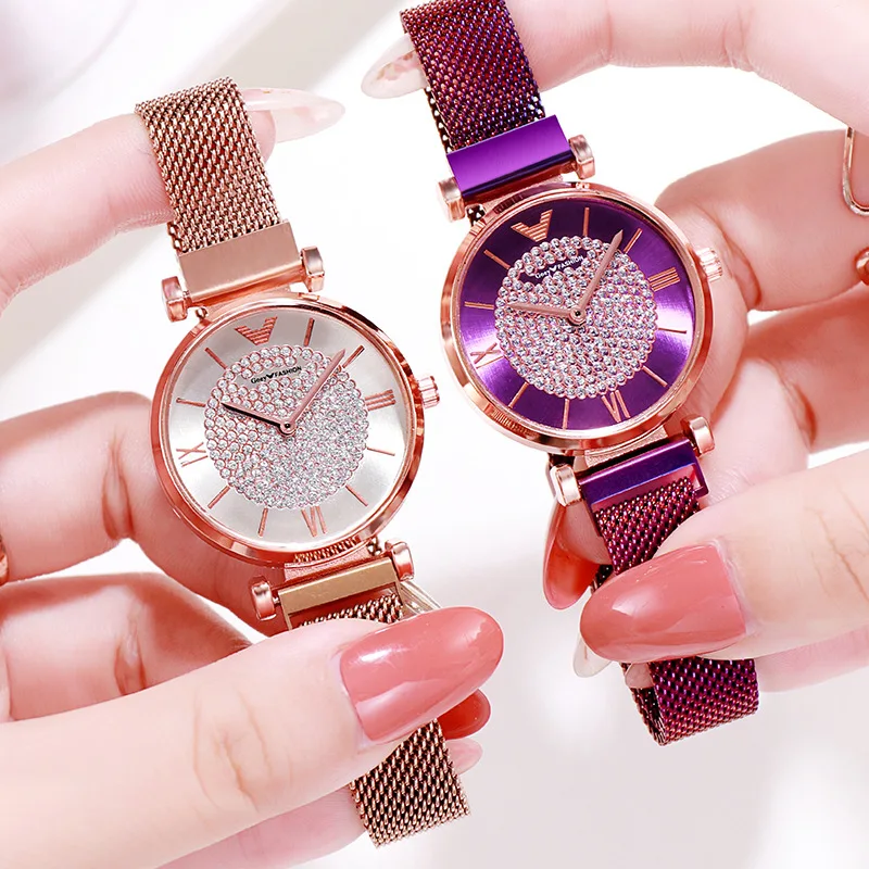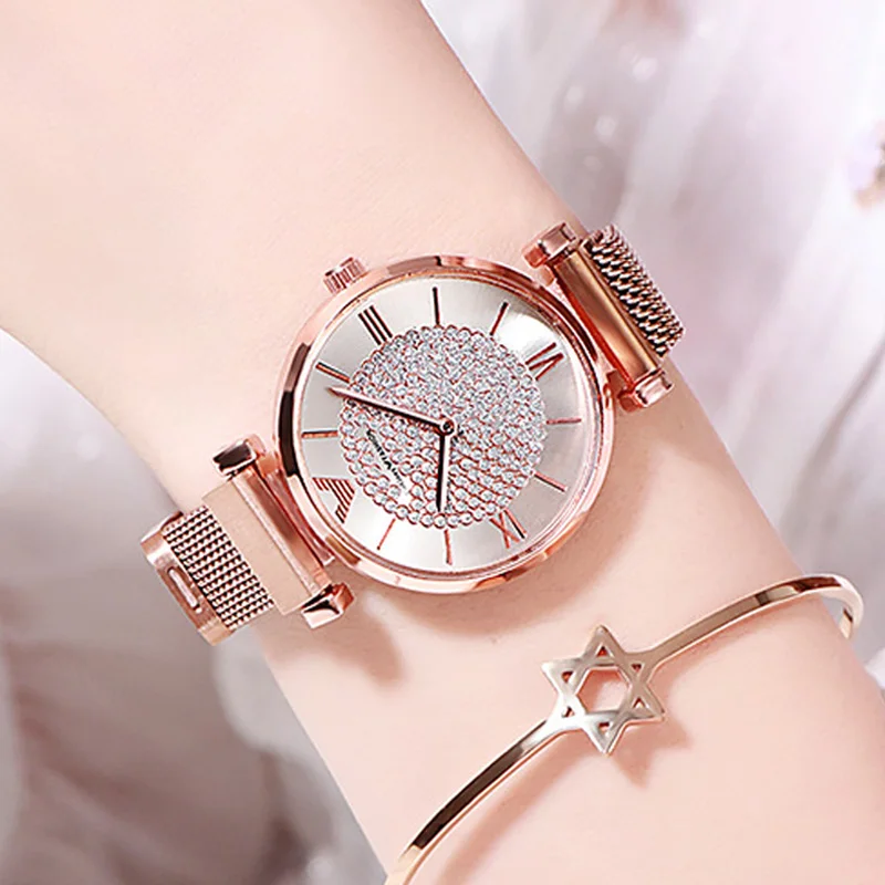 .image of Luxury Diamond Women Watches 2019 Rose Gold Magnetic Ladies Wrist Watches For Women Bracelet Watch